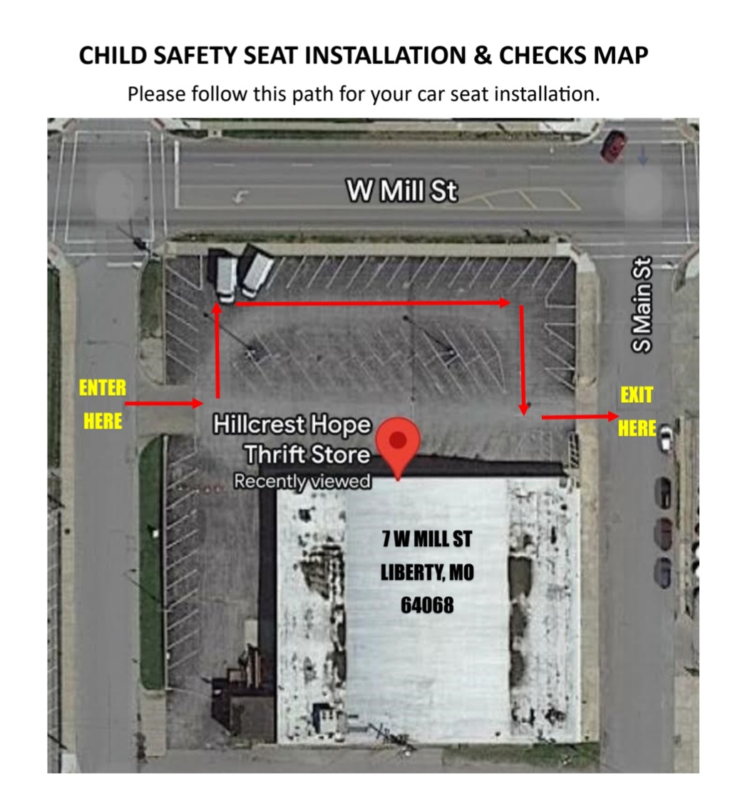 7 W. Mill St., Liberty, MO - Hillcrest Hope Thrift parking lot